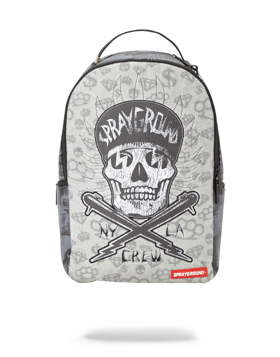ExteriorDimensions: 18' x 6' x 11.5' ∙ Front zipper pocket ∙ Side pockets ∙ Zippered Stash pocket ∙ Ergonomic mesh back padding ∙ Adjustable Straps for custom sizing ∙ Nylon Zippers with Metal Hardware ∙ Metal 'Sprayground Authentic' badge ∙ Slide through back sleeve connects to Carry on luggage to free your hands