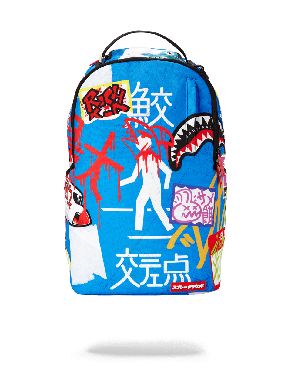 ExteriorDimensions: 18' x 6' x 11.5' ∙ Front zipper pocket ∙ Side pockets ∙ Zippered Stash pocket ∙ Ergonomic mesh back padding ∙ Adjustable Straps for custom sizing ∙ Nylon Zippers with Metal Hardware ∙ Metal 'Sprayground Authentic' badge ∙ Slide through back sleeve connects to Carry on luggage to free your hands