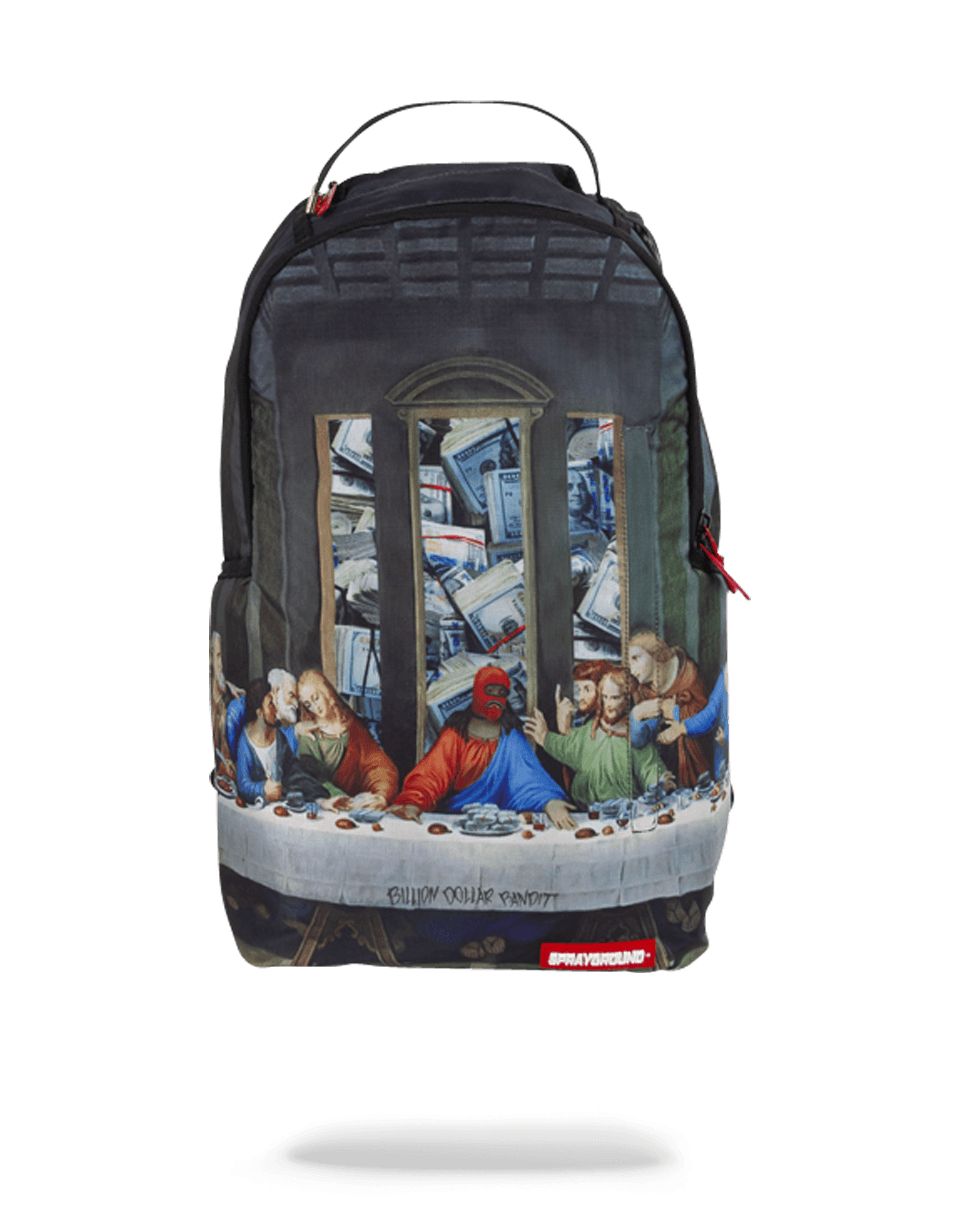ExteriorDimensions: 18' x 6' x 11.5' ∙ Front zipper pocket ∙ Side pockets ∙ Zippered Stash pocket ∙ Ergonomic mesh back padding ∙ Adjustable Straps for custom sizing ∙ Nylon Zippers with Metal Hardware ∙ Metal 'Sprayground Authentic' badge ∙ Slide through back sleeve connects to Carry on luggage to free your hands