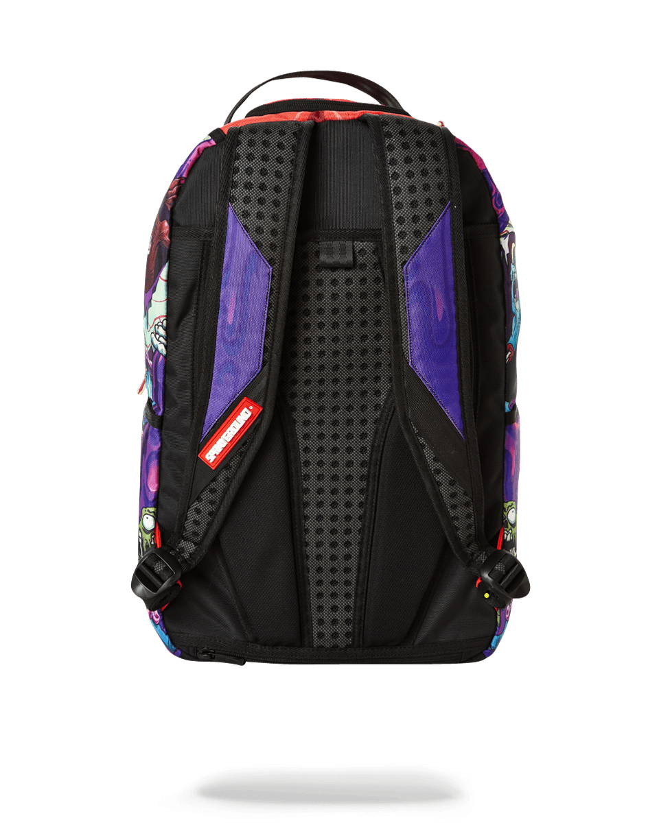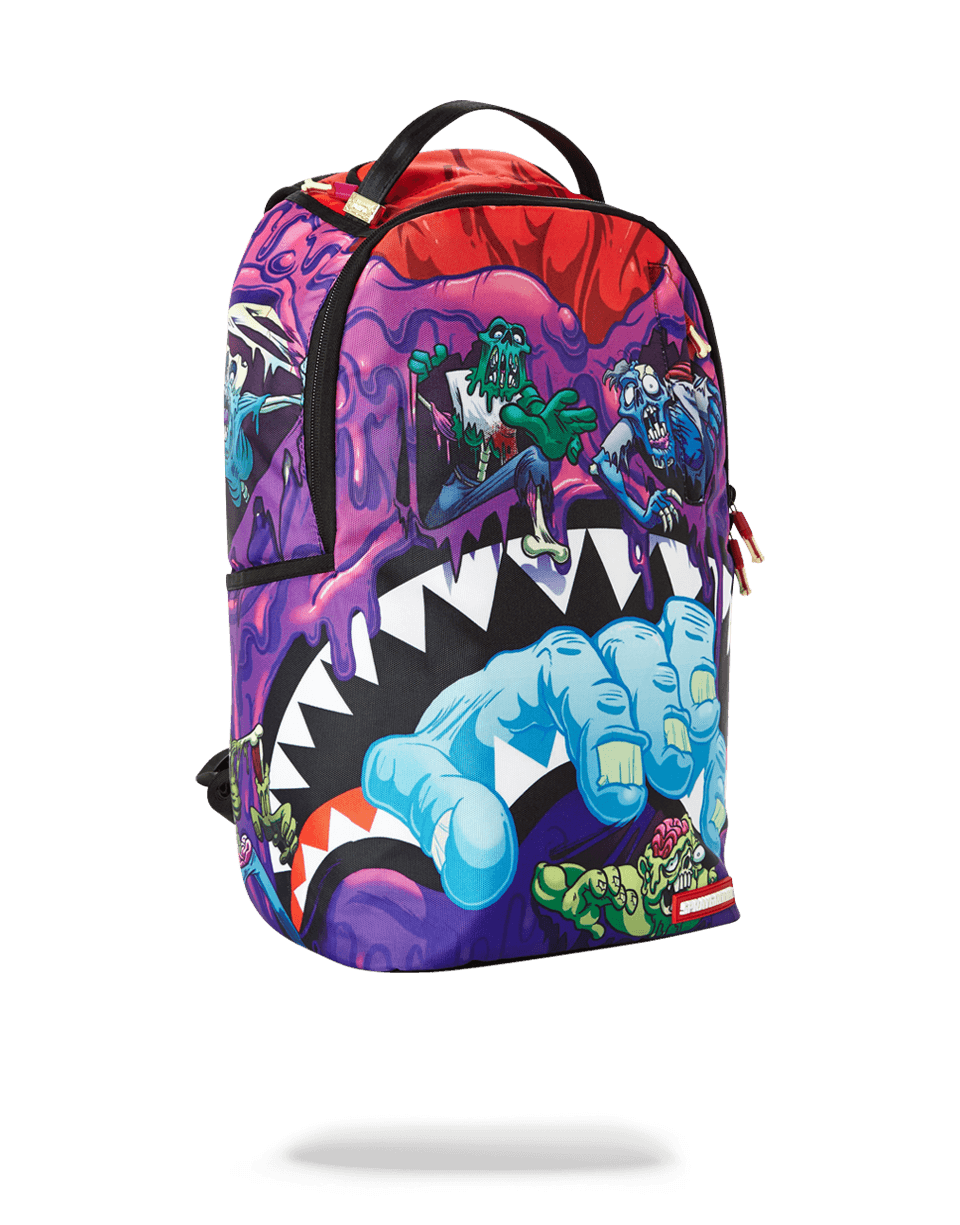 ExteriorDimensions: 18' x 6' x 11.5' ∙ Front zipper pocket∙ Side pockets ∙ Zippered Stash pocket ∙ Ergonomic mesh back padding ∙ Adjustable Straps for custom sizing ∙ Nylon Zippers with Metal Hardware ∙ Metal 'Sprayground Authentic' badge ∙ Slide through back sleeve connects to Carry on luggage to free your hands